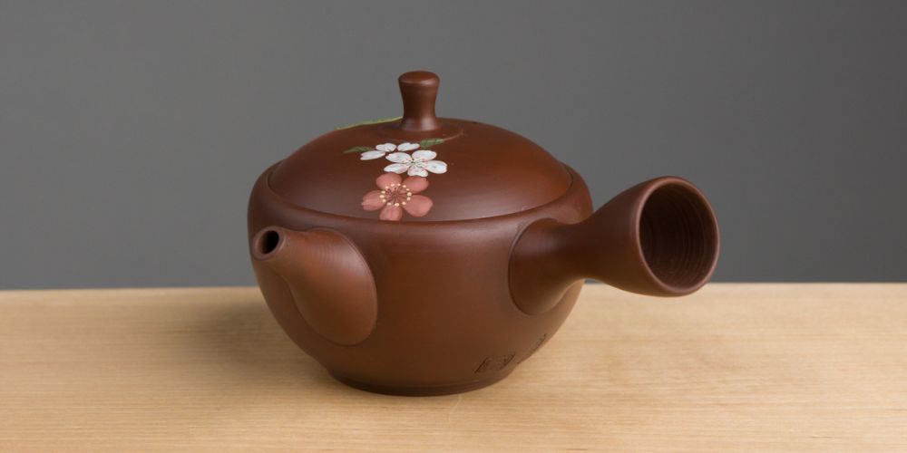 Keskikokoinen Tokonamen kyusu Umehara Jirolta jonka keraamikkonimi on Gyokuryu. Tässä teekannussa savi on mattapintaista ja rusehtavaa. Teekannun pinnoilla on punertavanvärisiä "uuni-efektejä" eli kohtia joissa väri yhtäkkiä muuttuu. Näiden luonne vaihtelee kappaleesta toiseen. Tämän lisäksi teekannun kansi ja kylki on koristeltu kirsikankukka-koristeluin. Teekannu on kaunis kuin koru. Siinä on lisäksi mainio laakea pienireikäinen siivilä minkä ansiosta se toimii mainiosti silppuisenkin teen hauduttamiseen. Toimitamme kyusun koristellussa pahvilaatikossa.