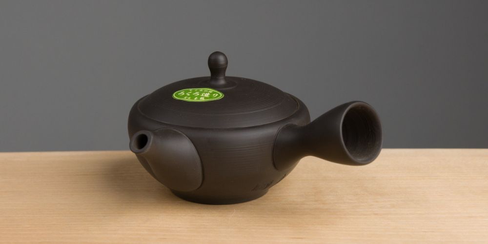 Hieman pienempi Tokonamen kyusu Umehara Jirolta jonka keraamikkonimi on Gyokuryu. Tässä teekannussa savi on mustaa ja mattapintaista. Teekannu on mukavan viimeistellyn tuntuinen käsissä. Teekannun ja kannen pinnalla on koristeina vaakauurteita. Teekannussa on mainio laakea pienireikäinen siivilä minkä ansiosta se toimii mainiosti silppuisenkin teen hauduttamiseen. Toimitamme kyusun koristellussa pahvilaatikossa.