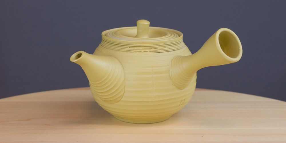 Tokonamen kaupungin keramiikkaa oleva keskikokoinen kirkkaankeltainen kyusu. Tämä on melko utilitaarinen selkeine linjoineen. Koristeluna on uurteita ja kylkeen painetut pystysuuntaiset viivamaiset painaumat.