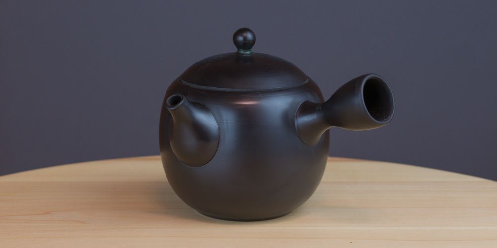 Tokonamen kaupungin keramiikkaa oleva hieman keskimäääräistä pienempi kyusu. Kyusun ulkopinnan lasitus on musta. Kyusu tarjoaa tarkkaa funktionaalisuutta tyylikkään vähäilmeisessä muodossa.